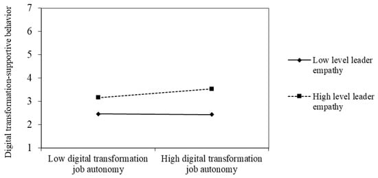 The moderating role of leader empathy on the relationship between digital transformation job autonomy and digital transformation-supportive behavior.