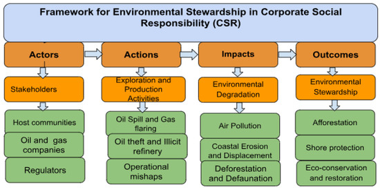 The focus on Nigeria is both timely and pertinent. As the largest oil-producing nation in Africa and one of its most populous countries, Nigeria represents a compelling case of a fossil fuel-dependent economy intertwined with persistent environmental injustice (Timidi & Angiamaowei, 2024; Olunusi & Adeboye, 2025). The dynamics of the oil and gas industry reveal the inherent contradictions of corporate social responsibility (CSR) in lower-income economy contexts, where global standards confront local socio-political complexities, and corporate environmental commitments frequently fail to achieve their intended impact. By shedding light on the lived experiences of communities in oil-rich regions, this study examines the role of corporate social responsibility (CSR) as a strategic response to environmental degradation in the oil and gas industry, with a focus on stakeholder perceptions and company practices. It contributes a conceptual framework that maps the relationship between actors, their actions, and ecological outcomes. By highlighting the gap between community expectations and corporate interventions, this study offers practical insights to guide CSR policy toward environmental stewardship and sustainable development.