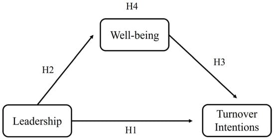 The literature review conducted above justifies the study of the association of leadership (both transformational and transactional) with turnover intentions, as well as whether well-being serves as the mechanism that explains this relationship. The model presented in Figure 1 summarizes these relationships and the hypotheses formulated in this study.