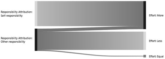 Sankey diagram of co-occurrence analysis between responsibility attribution and emotional exhaustion.