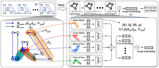 The algorithm’s core links, as depicted in Figure 1, consist of multi-graph data input, relationship-based feature construction, GNN-based hierarchical embedding learning (through multiple GNN layers to extract node and graph embeddings hc and g via operations like Inner–Inner, Cross–Inner, Inner–Cross, and Cross–Cross MLP-driven transformations), and eco-efficiency evaluation integration. The process starts with inputting multi-source graph-structured data related to tourism, followed by the construction of fine-grained inter-node relationships. GNNs learn hierarchical representations by leveraging these relationships, and the integrated embeddings support downstream tourism eco-efficiency assessment tasks, with the overall flow guiding the analysis of sustainable tourism ecosystem patterns as shown in Figure 1.