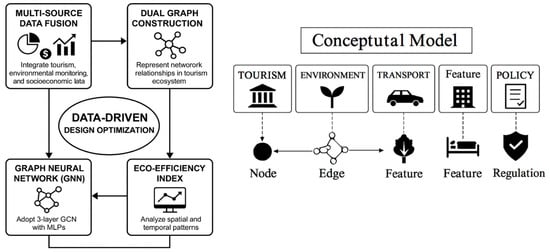 This study focuses on the application of multi-source data fusion and graph neural networks in tourism eco-efficiency evaluations. The core research question is: Can graph neural networks improve the accuracy and interpretability of tourism eco-efficiency assessments by capturing high-order spatial associations and behavioral interactions in tourism activities (such as tourists’ consumption preferences and the propagation of environmental protection behaviors)? Based on this, a testable hypothesis is proposed: compared with the traditional machine learning model, the graph neural network model integrating multi-source data can significantly reduce the prediction error in the evaluation of tourism eco-efficiency, and its attention mechanism can effectively identify the key spatial nodes and behavior propagation paths that affect eco-efficiency.
