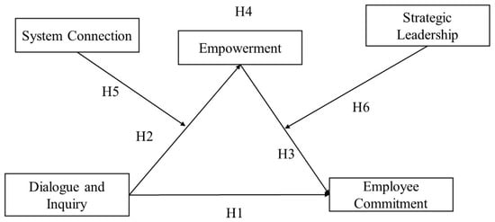 While the direct effect of dialogue and inquiry on employee commitment is understandable, as explained above in Hypothesis 1, we argue that the benefits of dialogue and inquiry may also be routed through empowerment. When employees engage in discussions and dialogues with other members of the organization, they tend to expand their horizons of knowledge, which motivates administrators to give them additional responsibilities and access to the resources to complete assigned tasks. Further, as documented in a large study conducted on 1283 nurses working in public and private hospitals in Australia, empowerment was a significant predictor of affective commitment (Brunetto et al., 2011). While the studies on empowerment as a moderator are scant, in a recent study conducted on 389 working nurses in India (public and private hospitals operating in Punjab state), researchers found that psychological empowerment mediated the relationship between structural empowerment and employee commitment (Aggarwal et al., 2018). We offer the following exploratory mediation hypothesis based on the direct relationships between dialogue and inquiry, empowerment, and employee commitment.