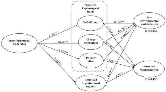 We used education, gender, race, and industries as control variables. Empirical evidence suggests that higher education levels correlate positively with proactive attitudes through curricular and co-curricular activities (Q. Wang et al., 2022). Transformational leaders’ influence can vary significantly across gender lines (Zeng et al., 2020). Race can also shape an individual’s ethnoracial identity, impacting perceptions of environmental issues and organizational support frameworks (S. Li et al., 2022; Zainuri et al., 2022). Specific sectors, particularly those with greater environmental impacts (e.g., manufacturing, energy), may exhibit different behavioral norms influenced by industry standards and organizational culture (Choong et al., 2020). Considering these control variables can refine the impacts of transformational leadership on proactive work behavior and pro-environmental work behavior.