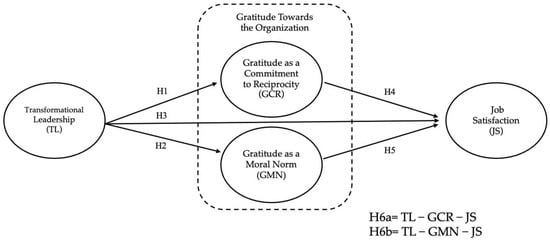 On the other hand, it is known that leaders who demonstrate moral and ethical conduct, considering the interests of the parties, are often perceived by employees as genuinely concerned for their well-being, generating a feeling of gratitude toward the leader (Burke & Richardsen, 2019). Studies of daily leadership show a close relationship between leadership and gratitude in work environments (Kelemen et al., 2020). Given this, it is clear that gratitude not only plays a role as a positive emotion but also positions itself as a fundamental relational element that can increase the link between transformational leadership and job satisfaction. Therefore, analyzing its role as a mediating variable constitutes both a significant theoretical and empirical contribution, as it enriches the understanding of the psychosocial processes underlying leader-employee interactions in the workplace. Thus, research such as this aims to address an existing gap in the literature and provide new guidelines for the design of organizational interventions focused on organizational well-being and performance. Based on the above, the following study hypotheses are proposed: