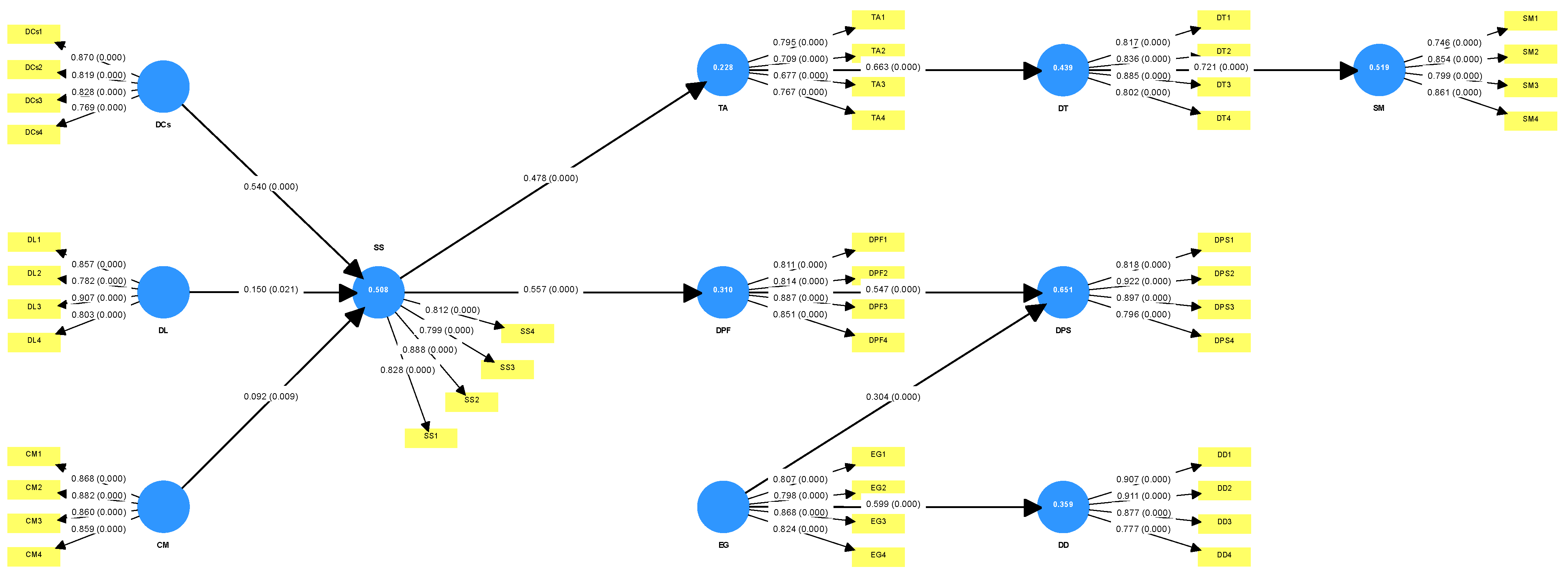 SS → DPF | 0.450 | 3.677 | 0.000 | 0.352 | 0.448 |