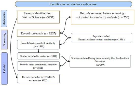 Our analysis began with 3957 scientific articles retrieved from the Web of Science database using the query: