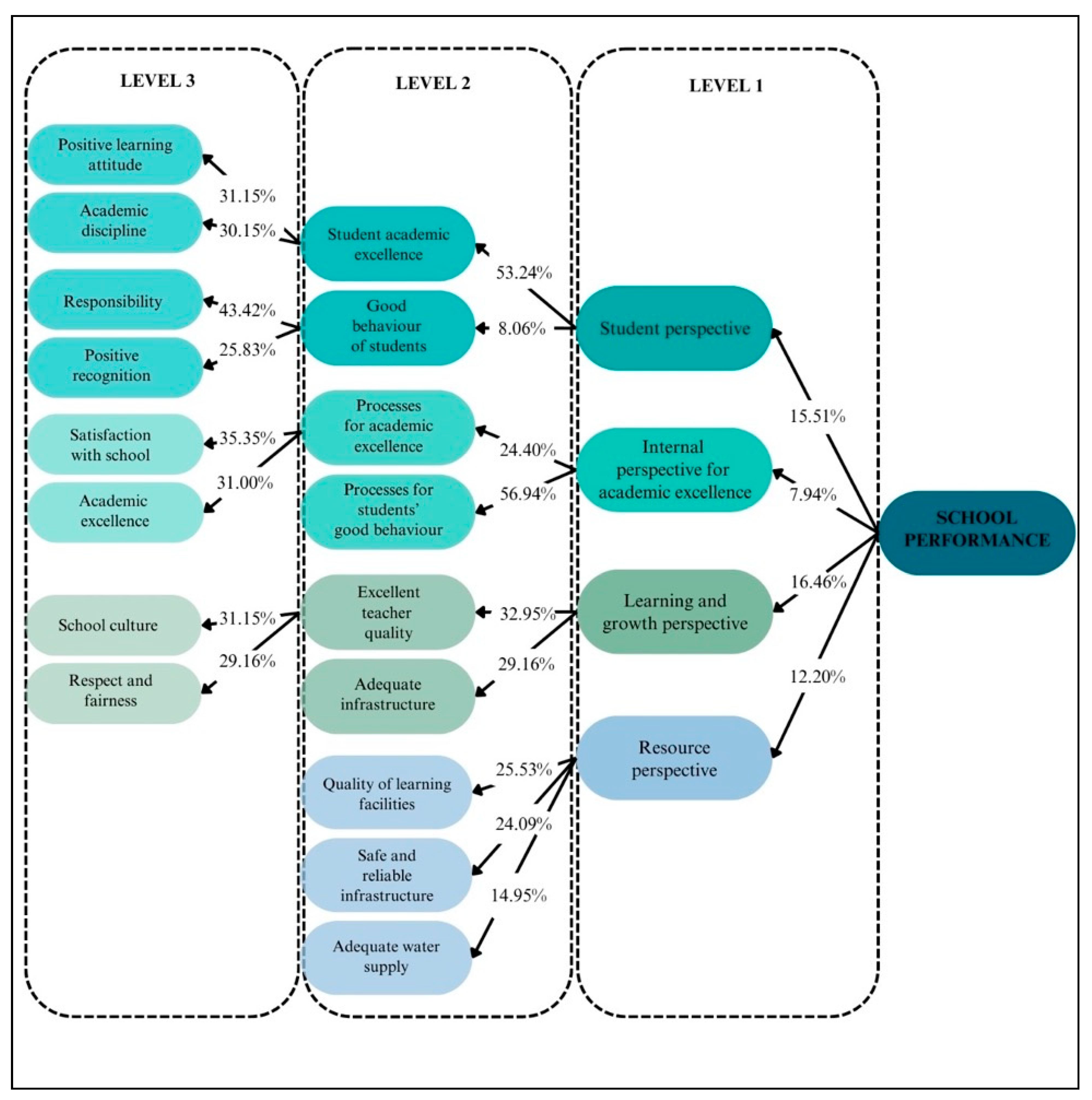 | Student Perspective (15.51%) | Internal Perspective for Academic Excellence (7.94%) | Learning and Growth (16.46%) | Resource Perspective (12.20%) | |||||||||