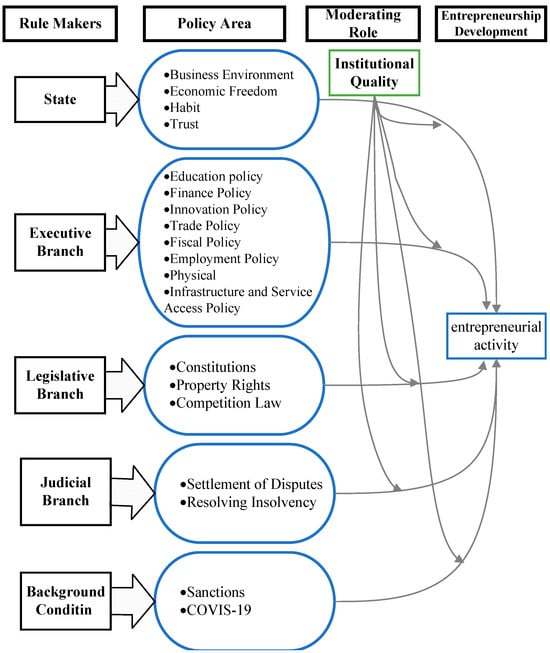 - Audretsch, D. B. (2023). Institutions and entrepreneurship. Eurasian Business Review, 13(3), 495–505. [Google Scholar] [CrossRef]