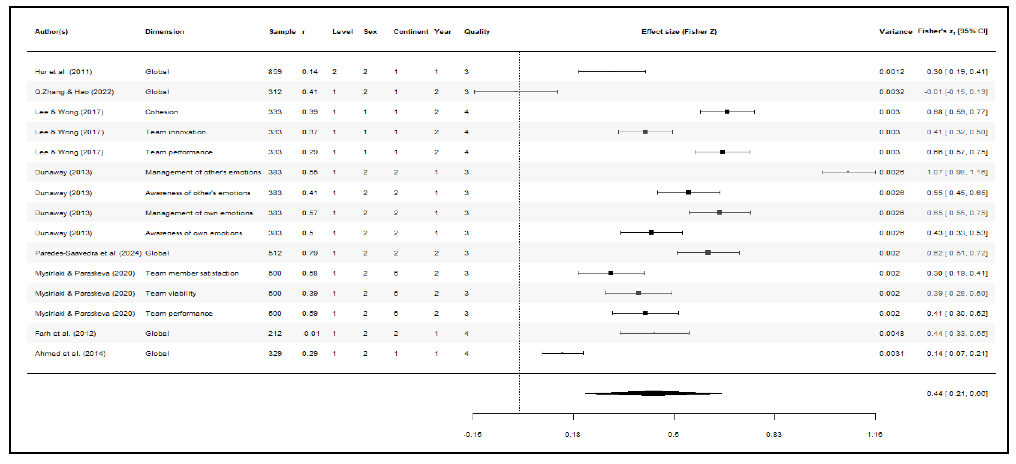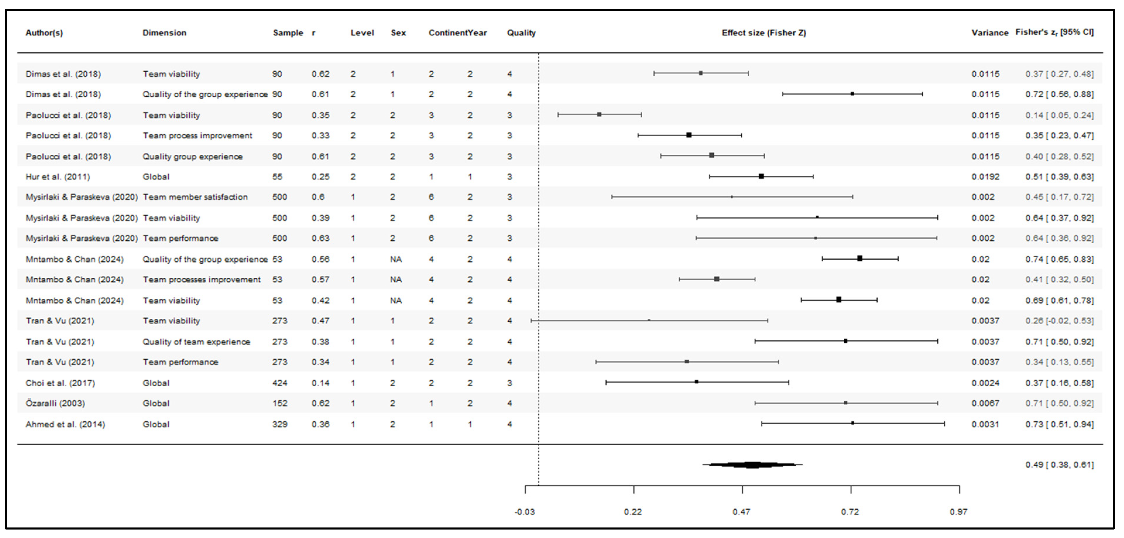 | 15 | Tran and Vu (2021) | 2 | 1 | Teamwork orientation, Shared leadership | NI | 1 | Services (Information Technology, Real Estate, Financial, and Educational Products) | Transversal | Vietnam | 1 |