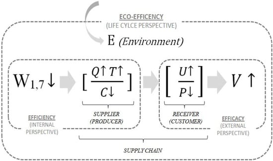 In the light of the notions/concepts of efficiency and eco-efficiency, over the past two decades numerous studies have been developed. Starting from the “clean” (including the IE approaches) or the “lean” manufacturing standpoint they have investigated the links between the concepts of value, waste, productivity, strategies, competitive advantage, and their application to manufacturing contexts, even in the broad sense of the supply chain/life cycle perspective.