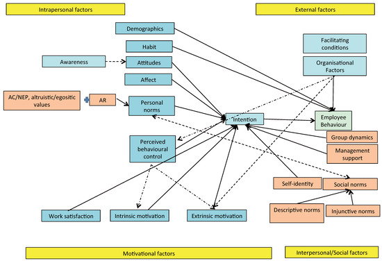 - Lülfs, R.; Hahn, R. Sustainable Behaviour in the Business Sphere—A Comprehensive Overview of the Explanatory Power of Psychological Models. Organ. Environ. 2014, 27, 43–64. [Google Scholar] [CrossRef]