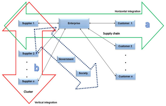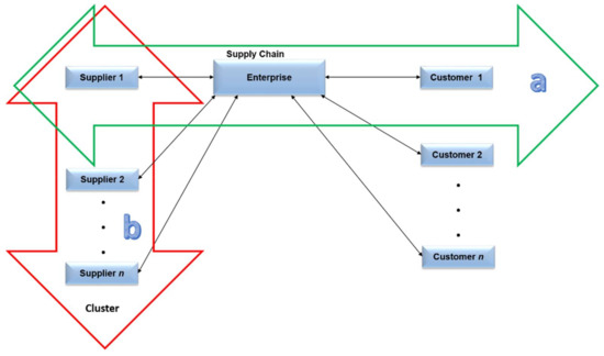 Hence, theoretically there are two types of relationships: horizontal (see ‘a’ in Figure 1), which are those that suppliers have with companies and customers; and, vertical which comprehend the supply chain integration and business clusters (see ‘b’ in Figure 1).