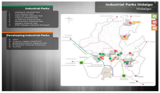 - Corporación de Fomento de Infraestructura Industrial. 2016. Infraestructura Industrial de Hidalgo. Available online: http://cofoin.hidalgo.gob.mx/?=49 (accessed on 10 August 2016).