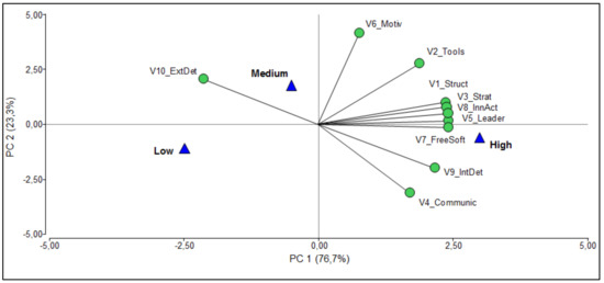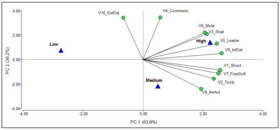 The data collected from the questions of the questionnaire are qualitative and quantitative and belong to different measurement scales (nominal, ordinal, interval or ratio). Based on these questions, base variables were constructed (subvariables—Table 2), which are all qualitative ordinals with 5 possible values: very high, high, medium, low and very low. These values were assigned creating a correspondence between the responses of the original variables and the contribution of these responses to the degree of innovation. This step is carried out ad hoc considering empirical and conceptual criteria (Camio et al. 2016).