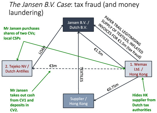 This case illustrates the combination of tax fraud and the laundering of its proceeds using various corporate vehicles. This case revolves around the Dutch textile wholesale company Jansen BV