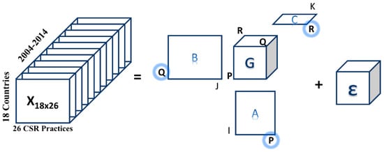 In this investigation, the data present a three-way structure, where the A mode of subjects corresponds to the countries of origin of large international companies; the B mode of variables refers to international practices that assess the level of sustainability of companies; and, the C mode of times is in relation to the years of study, which in this case is the 2004–2014 decade. The fundamental objective of the use of this methodology is to examine the relationships between deeper interactions, seeking to characterise each of the countries of origin of the companies in relation to the development of their CSR practices.