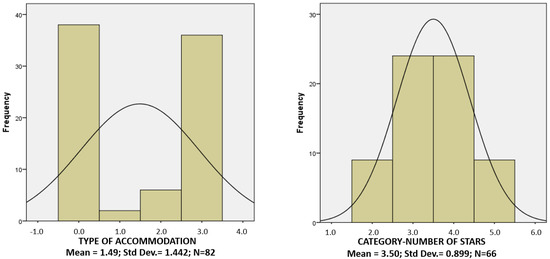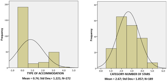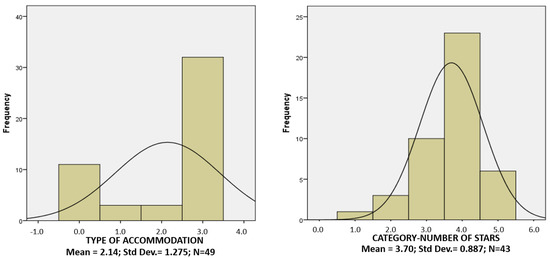 On the other hand, Agadir presents quite different results from Gran Canaria (see Figure 3) due to the fact that the accommodations offered by Booking.com in this destination are mostly hotels with a four-star category or keys. Thus, by analyzing these variables, the quality of Agadir and its added value should be higher, but the statistical analyses carried out later will allow us to verify whether this is the case based on the customers’ perceptions.