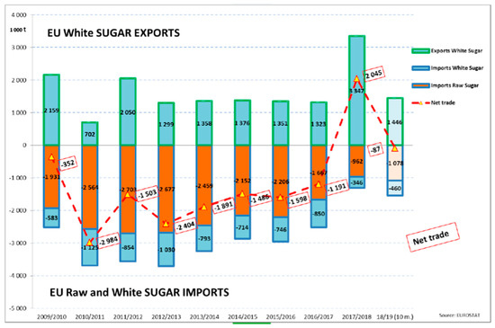 - European Commission—Committee for the Common Organization of Agricultural Markets. 2019. Sugar Trade Statistics. September 26. Available online: https://ec.europa.eu/agriculture/sites/agriculture/files/market-observatory/sugar/doc/market-situation_en.pdf (accessed on 2 October 2019).