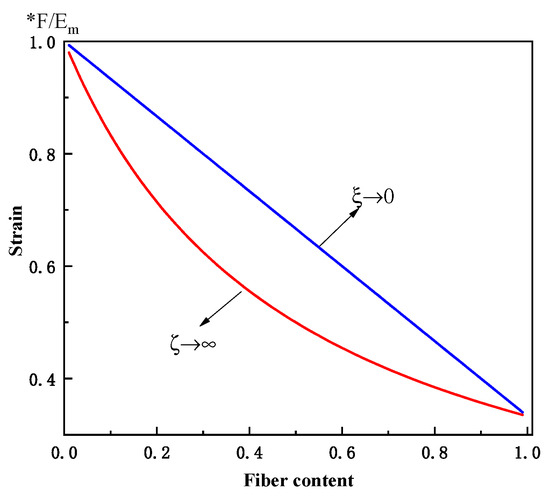 Based on the quasi-static compression mechanical test, and . The upper and lower limits of the strain variations with respect to the fiber content are shown in Figure 10. With increasing rubber fiber content, the strain decreases under equal force. The smaller the strain, the less plastic deformation occurs. Therefore, the rubber fiber improves the restorability of the material.