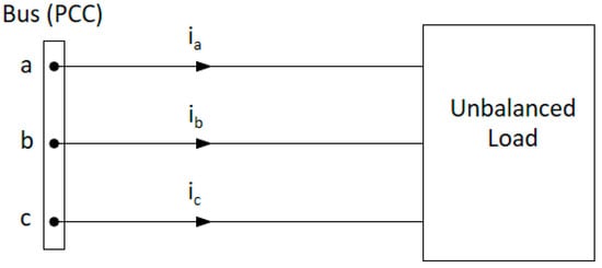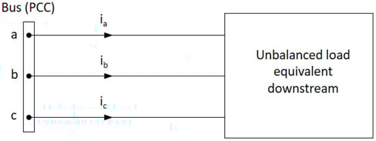 In this section, a practical case study to verify all concepts discussed in the previous sections is conducted. Figure 5 shows an unbalanced three-phase linear three-wire system connected to an infinite power network with unbalanced voltages. An equivalent unbalanced load representing the entire network downstream of the bus is considered. The characteristics of the entire network from the bus are unknown. The following values of the line-to-line voltages and line currents have been measured on the bus (PCC):