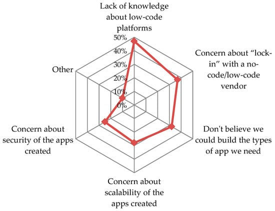 Main reasons for not using or considering low-code development platforms.