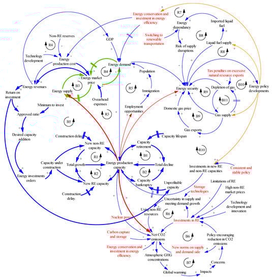 A system dynamics model of the Australian energy sector is developed based on the causal loop diagram (CLD) designed in Laimon et al. []. In this research, CLD was used to describe the dynamics underlying interactions between constituent components of the sector.