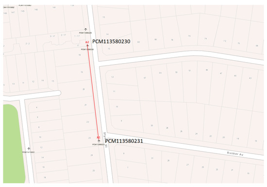 Two survey points were identified (Table 2 and Figure 4) and located. These survey points were approximately 95 m apart and are located in a residential area.