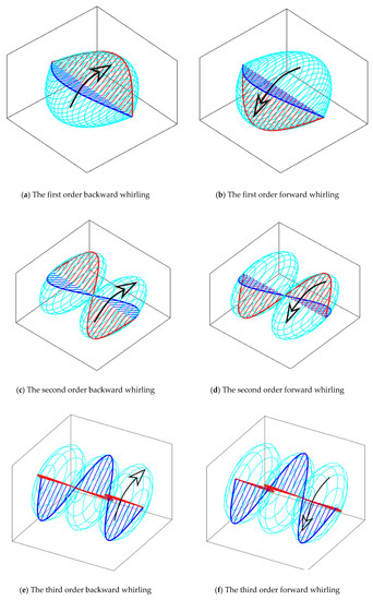 The superscript numbers in Equation (24) denote the row number of the corresponding matrix. The gyroscopic term expressed in the generalized coordinate in Equation (23) plays a key role, which leads to frequency bifurcation and complex modes.
