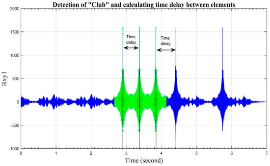 Detection of “club” and calculation of time delay between elements.