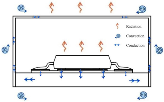where A is the radiation heat-dissipation area, ε is the thermal radiation coefficient value in the range of 0~1, and σ is the Boltzmann constant value 5.6704 × 10−8 W/m2K4.