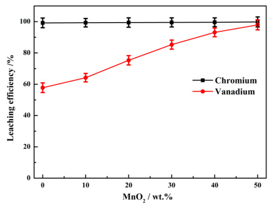 Effect of MnO2 dosage on the leaching efficiency of vanadium and chromium.
