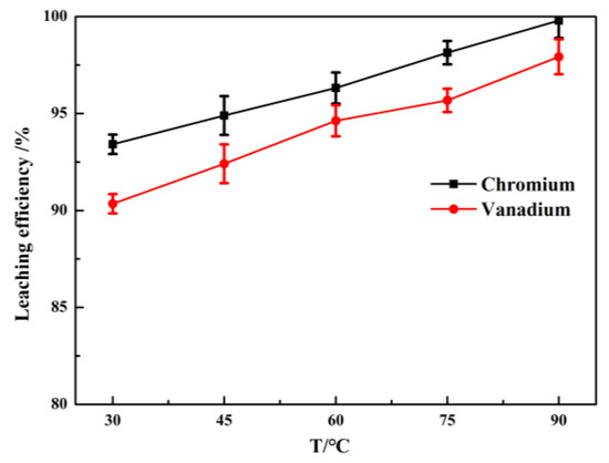 Effect of reaction temperature on the leaching efficiency of vanadium and chromium.