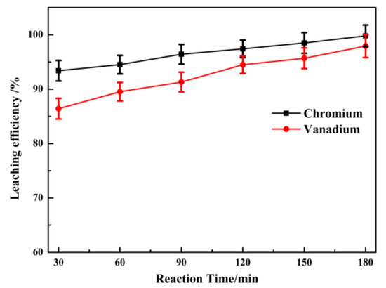 Effect of reaction time on the leaching efficiency of vanadium.