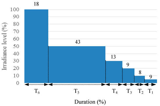 Example of irradiance-duration curve with four levels of operation [6,7,8].