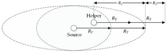 From (13)–(15), the probability that a node that has received the packet becomes a potential helper can be calculated as: