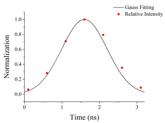 Figure 1 showed the Gaussian fitting of normalized temporal distribution. The full width at half maximum (FWHM) of pulse duration was 1.6 ns. The spatial distribution of the laser was complex since the laser was focused on grazing incidence which caused the optical aberration. Even though, mostly the laser energy was focused into a small area that could be fitted into a Gaussian shape. Approximately, the spatial distribution of the focused laser was simulated as a Gaussian distribution. The function of describing the focused laser spot was as follow: