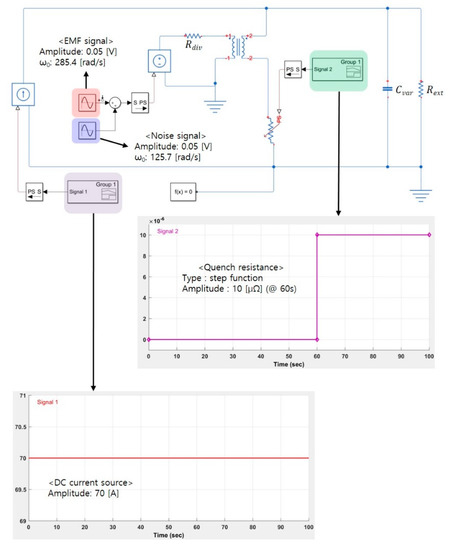 - Choi, Y.; Lee, W.S.; Song, S.; Jeon, H.; Ko, T.K. A New Quench Protection System Using Dual-Capacitor Switching for Fast Energy Extraction from HTS Magnets. IEEE Trans. Appl. Supercond. 2019, 29, 4702905. [Google Scholar] [CrossRef]