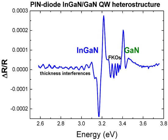 Figure 7. ER spectrum of PIN-diode based on In0.055Ga0.945N/GaN double heterostructure quantum-well with thickness interferences at energies below the band gap energy of In0.055Ga0.945N.