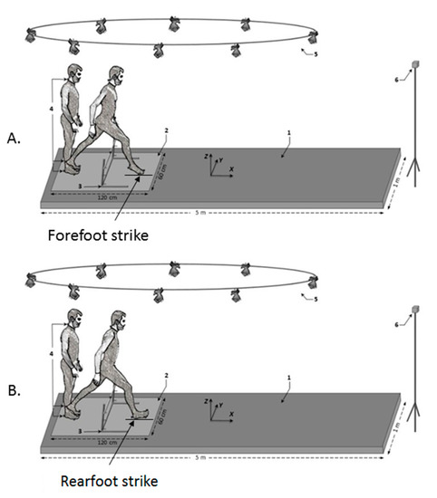 - Daoud, A.I.; Geissler, G.J.; Wang, F.; Saretsky, J.; Daoud, Y.A.; Lieberman, D.E. Foot strike and injury rates in endurance runners: a retrospective study. Med. Sci. Sports Exerc. 2012, 44, 1325–1334. [Google Scholar] [CrossRef]