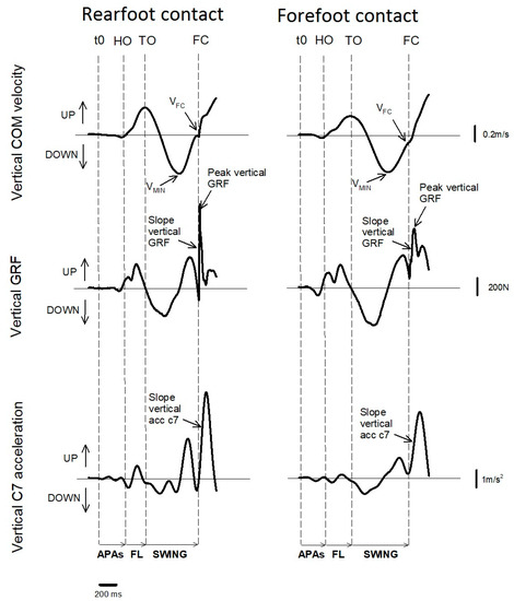 where VMIN is the minimum vertical centre of mass velocity occurring between mid- to late swing, and VFC is the vertical centre of mass velocity at foot contact (Figure 3).