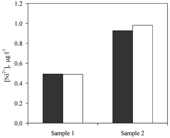 Three real samples from the Bay of Cádiz (southwest Spain) were used to study the applicability of the optimized method to determine and quantify the different nickel species present in the samples following the diagram shown in Figure 3. The analysis of a unique subsample allows the determination of the labile and no-labile fraction.
