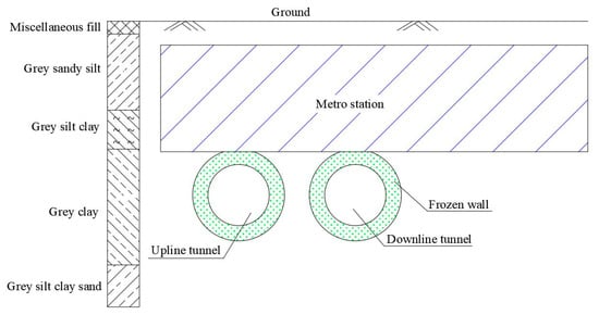 AGF is also an attractive solution in the case of where a tunnel is built at a limited distance below or close to existing buildings [,]. However, migration and freezing of water in soil cause expansion of the soil volume in a construction process [,]. As a result, the strata deformation and ground heave may threaten the safety of upper structures.