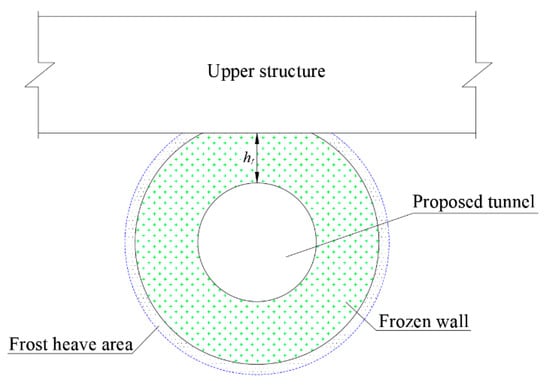 where Δl is the expanded value of a frozen wall and hf is the distance from the top of a tunnel to the base slab of upper structures, as illustrated in Figure 6.