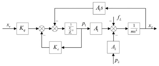where is the total mass of the piston, is the load force, and is viscous damping coefficient. According to Equations (1), (3), (4), (6) and (7), the transfer function of SMEHS is derived as follows: