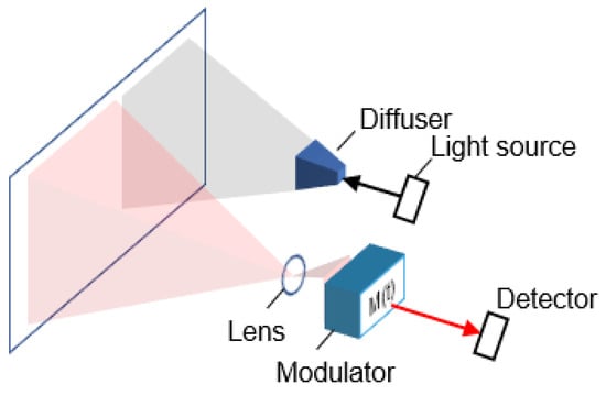 General AMCW-based ToF measurement scheme is illustrated in Figure 1. The illumination source is modulated within the frequency range of 20–30 MHz usually. This modulated light is emitted onto the object, which reflects the modulated light back to the detector. Detected reflected light signal is demodulated by a demodulation pixel or by an optical shutter [12,13,14].