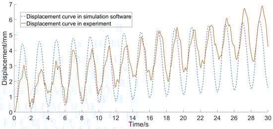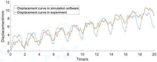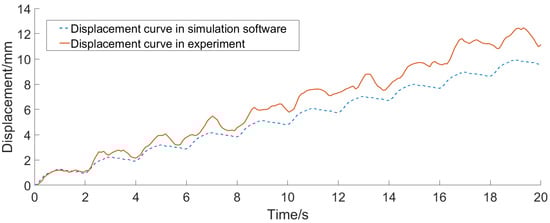 Comparison between simulation and experiment displacement curves of quadruped-like configuration.