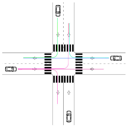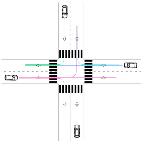 - Dresner, K.; Stone, P. Multiagent traffic management: A reservation-based intersection control mechanism. In Proceedings of the Third International Joint Conference on Autonomous Agents and Multiagent Systems (AAMAS 2004), New York, NY, USA, 19–23 July 2004. [Google Scholar]