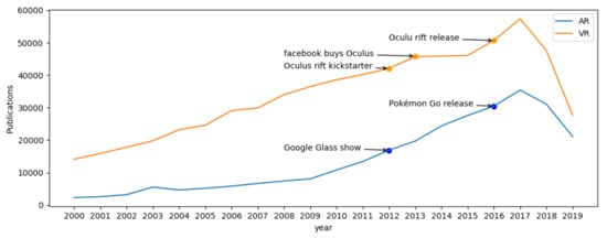 | Year | AR Number of Publications | Variation | VR Number of Publications | Variation |