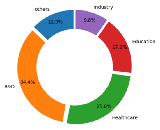 - Field of application: Field where the work presented is applied, like education, industry, health, etc.